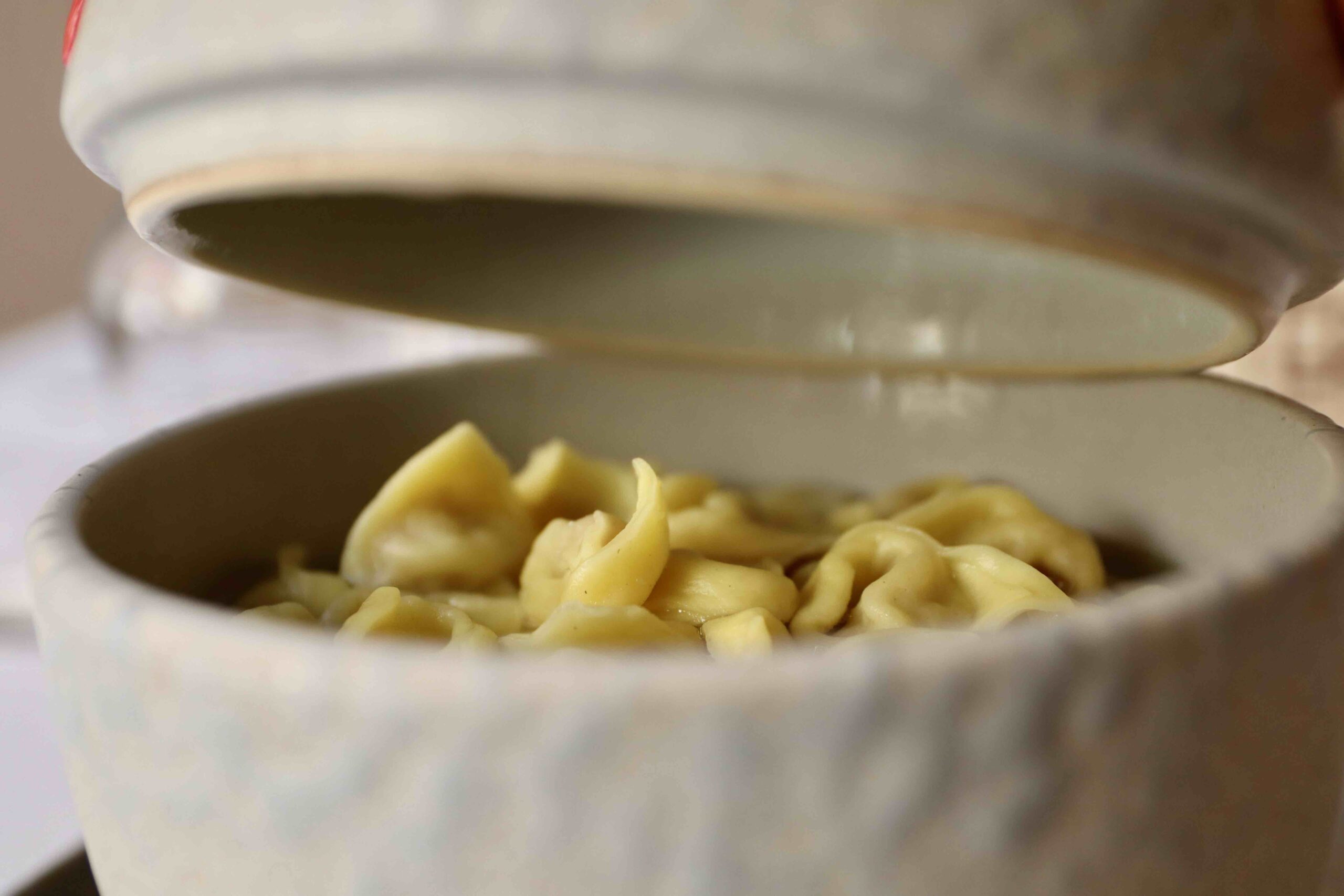 Tortellini come da tradizione in brodo di cappone o in crema di parmigiano reggiano 24 mesi